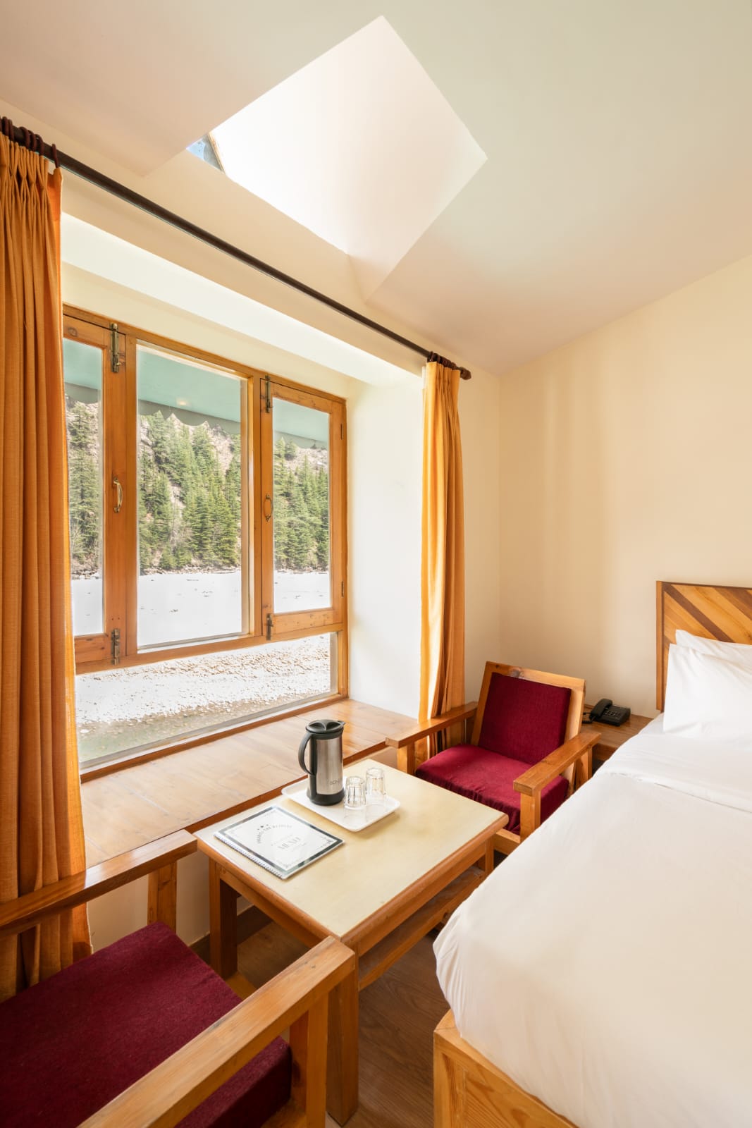 The Prakriti Retreat is a riverside leisure hotel situated near Harsil, on the Gangotri road in the Garhwal region of the Himalayas, Uttarakhand. It is described as a peaceful, offbeat mountain holiday destination, offering an escape from city life with serene views of the River Ganges (Bhagirathi River) and surrounding mountains filled with deodar trees.